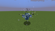 At half health, it causes a large explosion that spawns 3–4 wither skeletons (except on Easy difficulty), as well as gaining wither armor. Instead of flying to a random location, it dashes toward its target, destroying blocks and damaging mobs in its path. It also fires up to 4 skulls per burst: three black skulls followed by one blue skull.